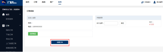 門店后臺→會員→門店會員→創建訂單:操作步驟參考總部后臺創建訂單。