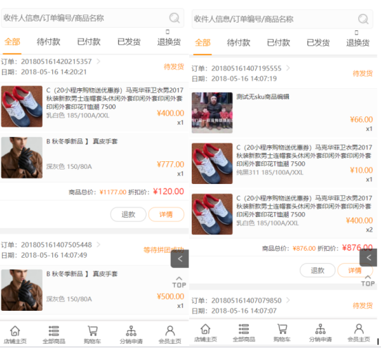 商家后臺/門店后臺給會員創建過訂單后,會員在手機端訂單列表中也可以查看對應的訂單。