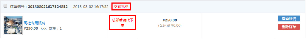 當后臺創建訂單添加的商品都為虛擬商品時,訂單狀態顯示為交易完成,與手機端下單邏輯相同。當后臺創建訂單添加的商品滿足消費送積分的條件時,會與手機端邏輯相同發送積分。(只有分銷商、門店、員工的身份可以拿到積分)。門店后臺創建訂單與之相同。