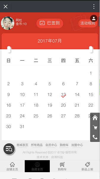 移動端增加簽到日歷--操作步驟: 總部后臺→營銷→積分營銷→每日簽到:增加“簽到日歷頁面”鏈接。