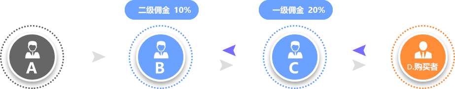 二級分銷返傭模式,每個分銷商都可以發展下級分銷商,
